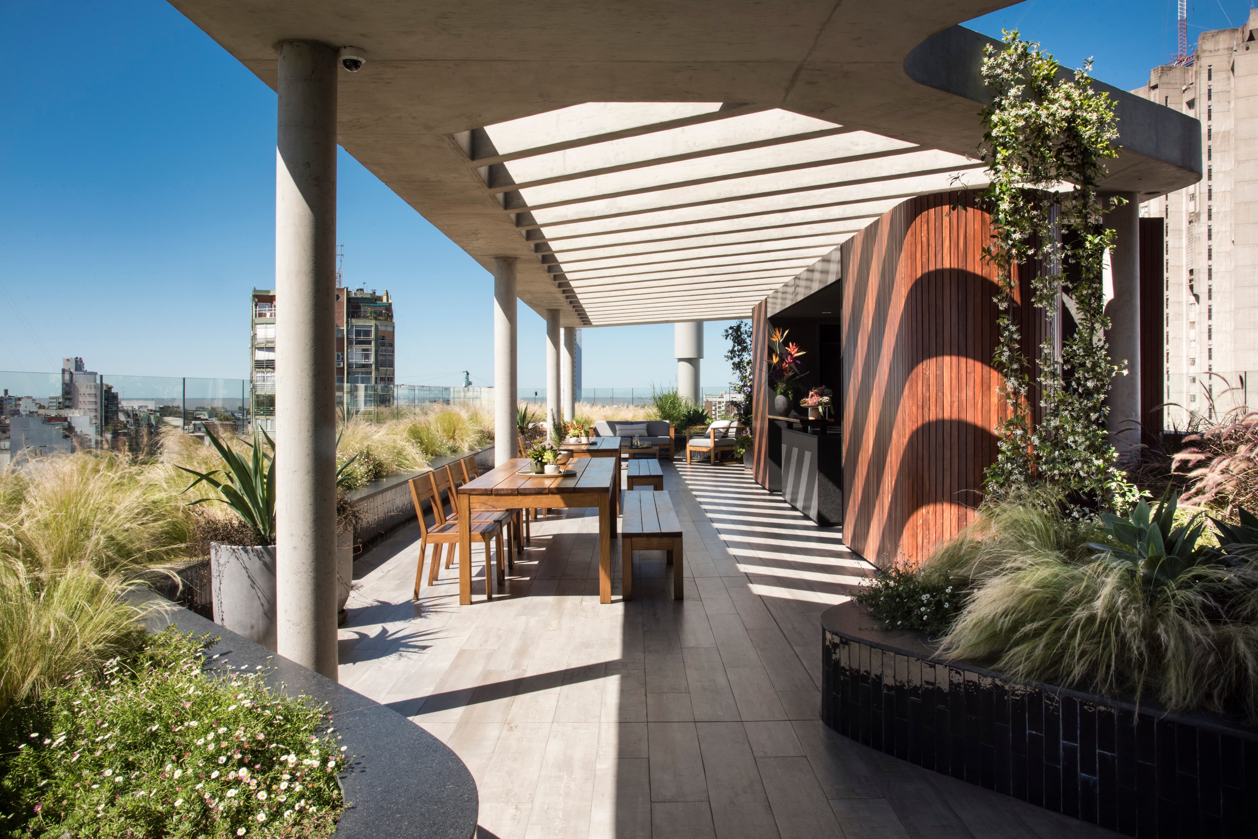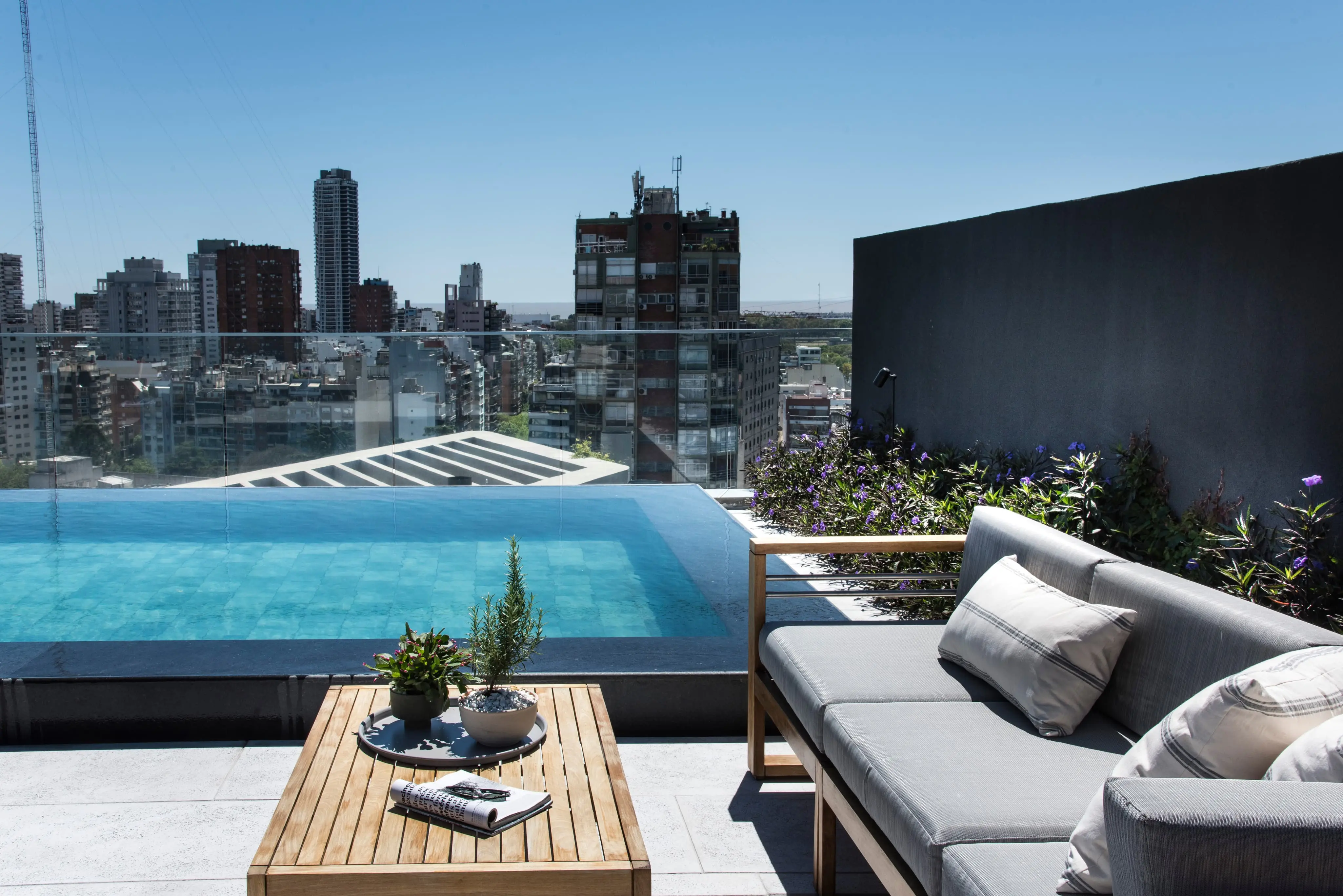 Pileta descubierta climatizada con borde infinito. Salón. Parrilla. Solarium. Gimnasio. Sala Multimedia y Sala de Juegos. Vestuario de Hombres y Mujeres. Terraza/Chill Out. Parrilla. Seguridad 24 hs. Vestuarios para personal. Laundry. Wi-fi en áreas comunes.